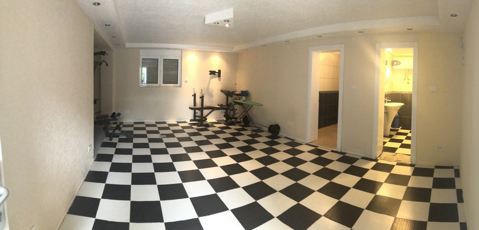 The ground floor consists of an open area suitable for a fitness room, a Sauna, showers, powder room/laundry room.